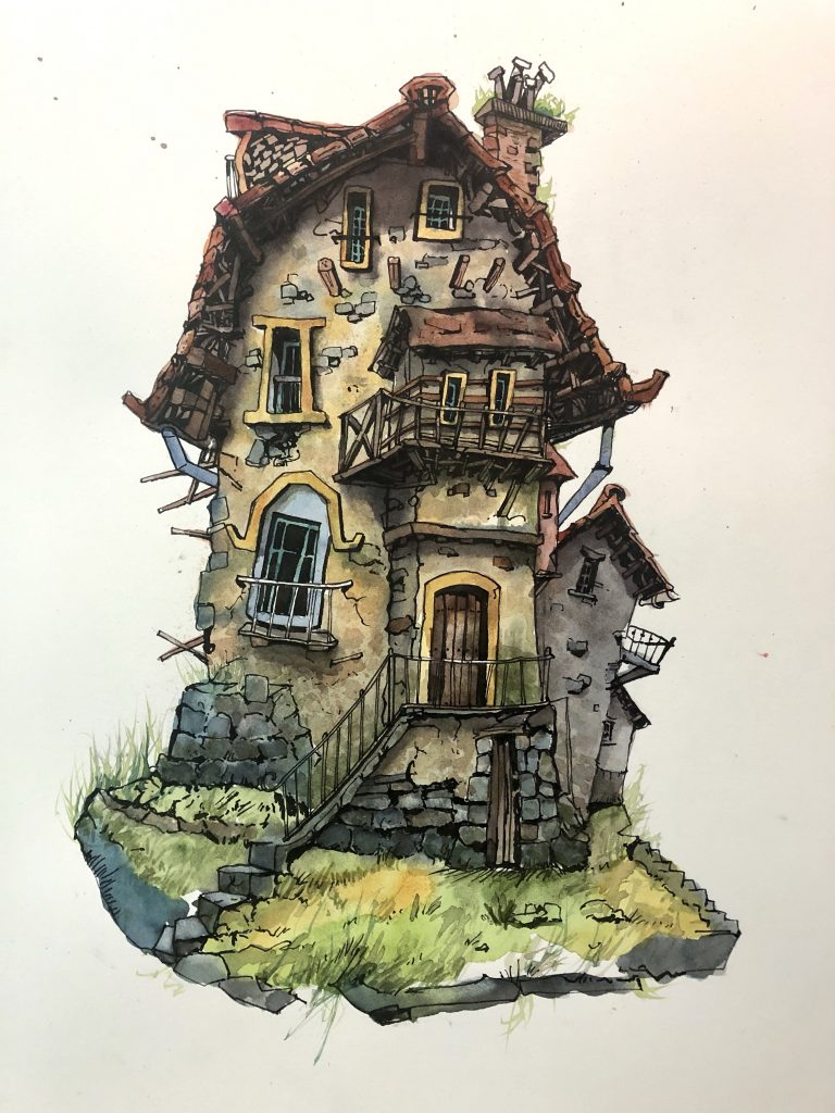 Actuelement mes dessins ne parlent pas consciemment de sujet en particulier. Il se dégage de la poésie de certaines maisons, une impressions de comtes, de féerie.